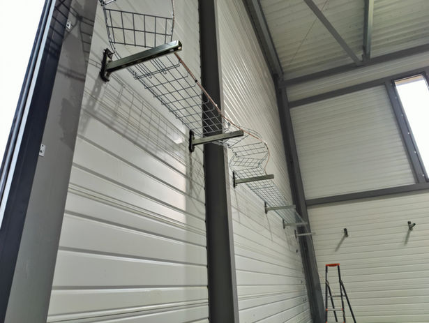 The warehouse of our client needed additionnal cable trays, but welding and drilling was not a feasible option due to insulation behind the wall plating.